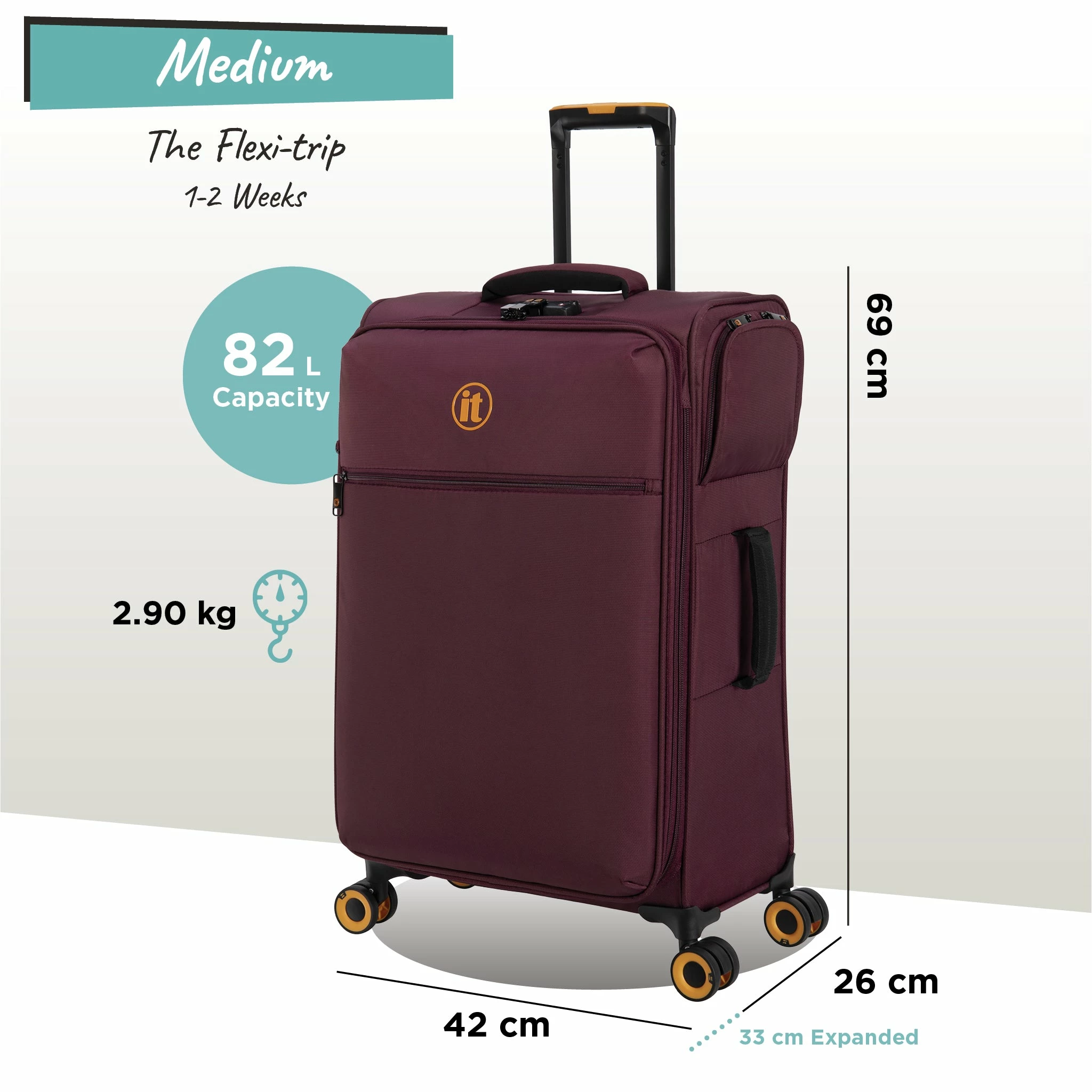 This Medium case also features an in-built TSA-approved combination lock for complete security, plus a zippered expander section to increase packing capacity by up to 25%.
