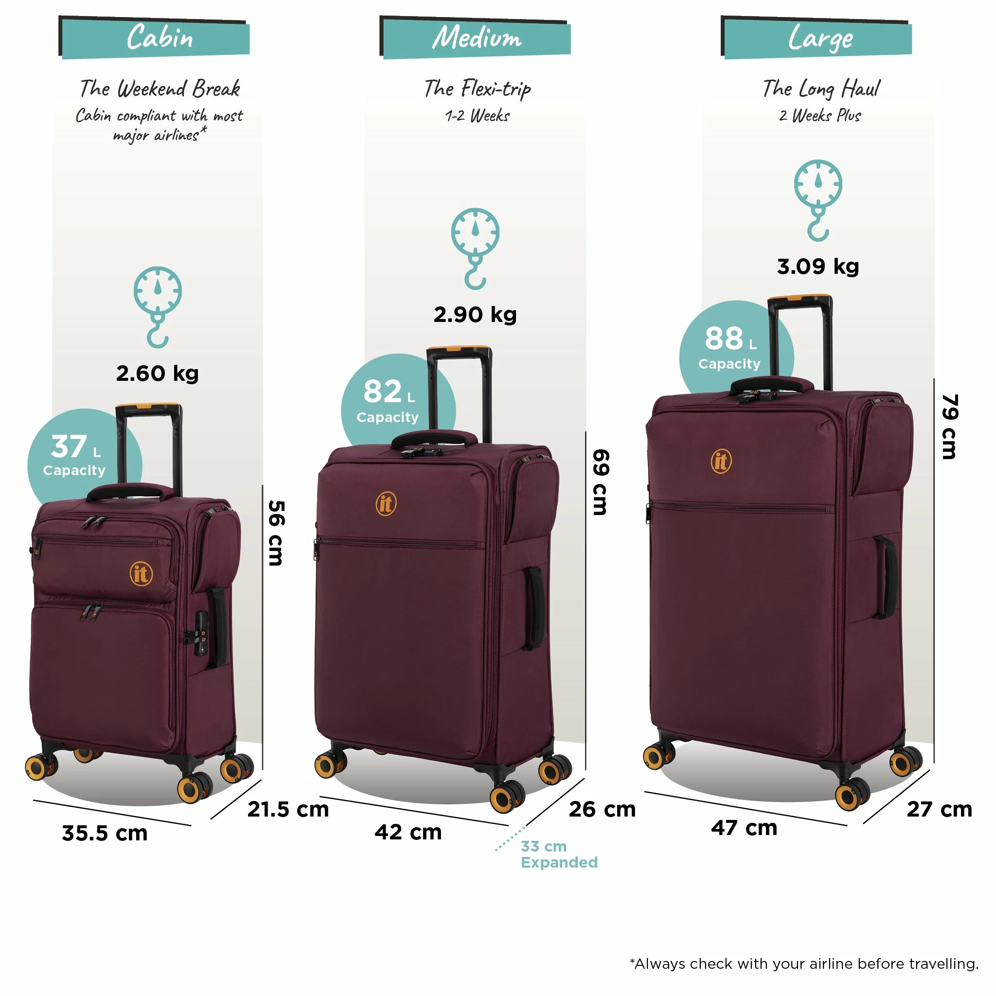 Strong straps with quick-release connectors on either side of the case are housed in zippered pockets. These are used to link to another Simultaneous case (up to 3 cases can be linked in total) in any size combination that suits your needs. This means you can, for example, link a medium to a large, a cabin and a large, or another medium.